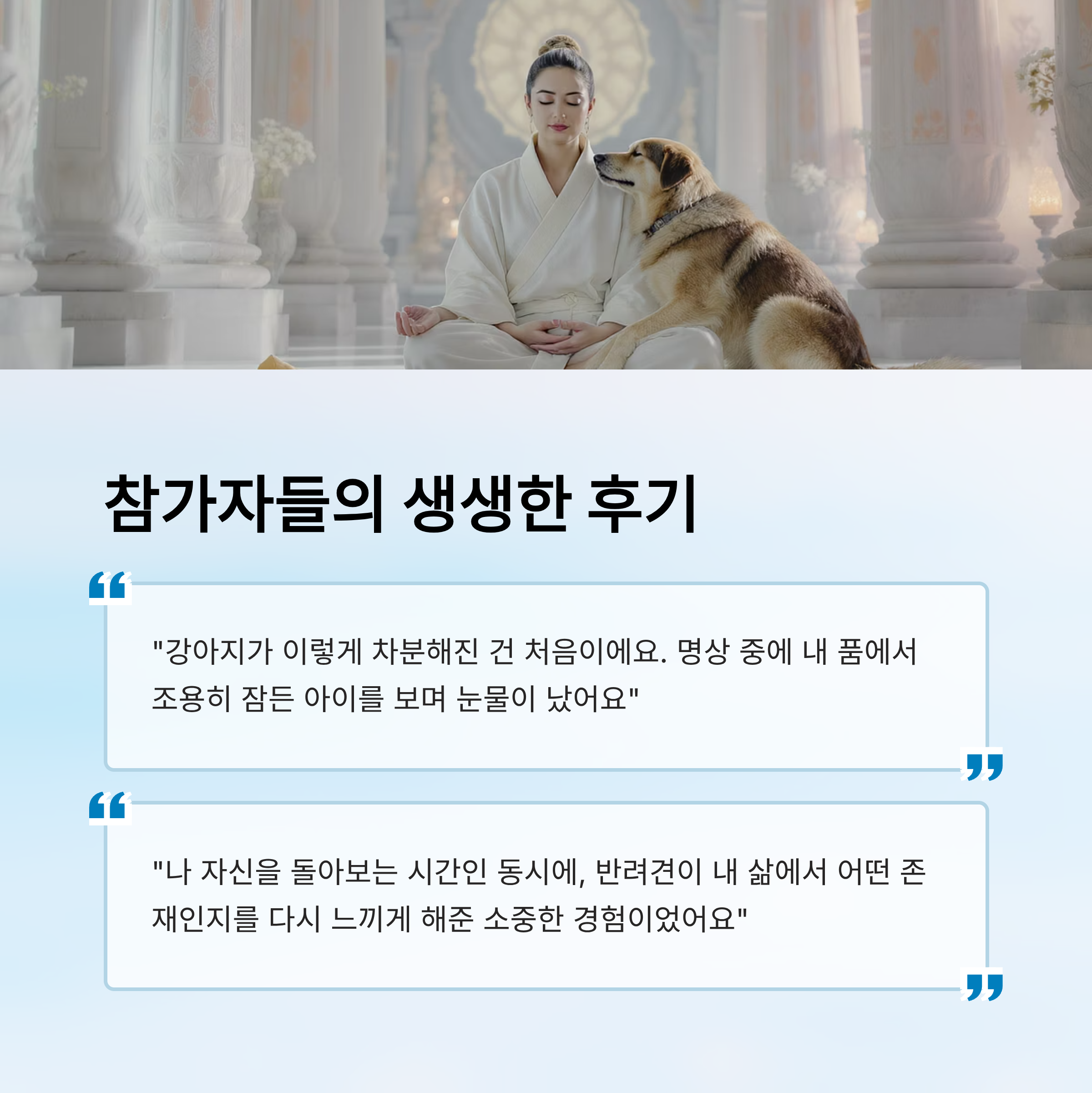 실제로 댕플 스테이에 참여한 사람들의 후기는 하나같이 따뜻하고 감동적이에요. 보호자들은 "강아지가 이렇게 차분해진 건 처음", "명상 중에 내 품에서 조용히 잠든 아이를 보며 눈물이 났다" 같은 말을 남겼어요. 그 말 속엔 단순한 체험 이상의 감정이 담겨 있답니다.