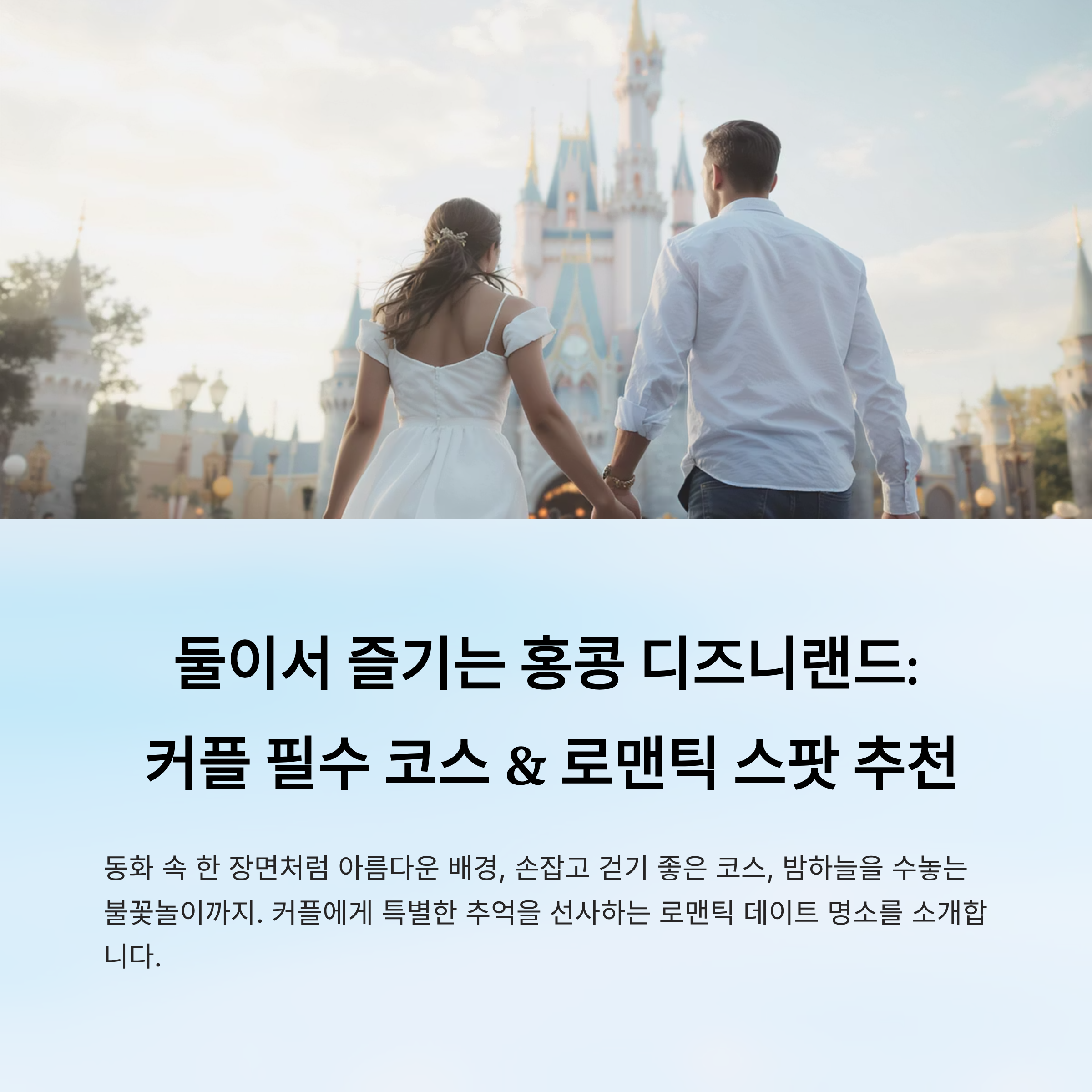 디즈니랜드는 어린이들만의 공간이라고 생각한다면 큰 오산이에요. 특히 홍콩 디즈니랜드는 커플들이 로맨틱한 데이트를 즐기기에 완벽한 요소들을 고루 갖추고 있어요. 동화 속 한 장면처럼 아름다운 배경, 손잡고 걷기 좋은 코스, 둘만의 시간을 보낼 수 있는 아늑한 레스토랑까지 모두 마련돼 있답니다.