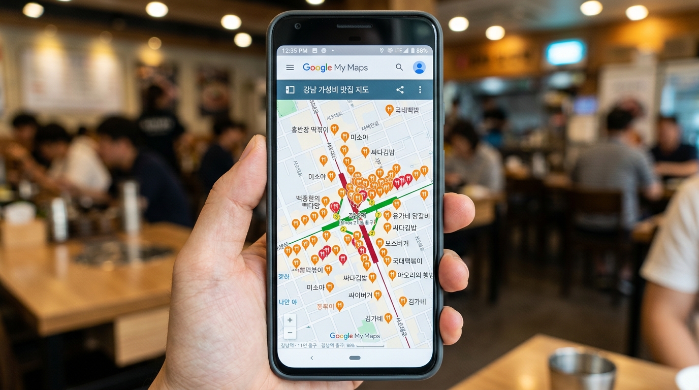 구글 내 지도(My Maps) 형태로 공유되는 경우가 많으니, 본인의 구글 계정에 저장해두면 이동 중에도 실시간으로 내 위치 주변 가성비 맛집을 확인할 수 있습니다.