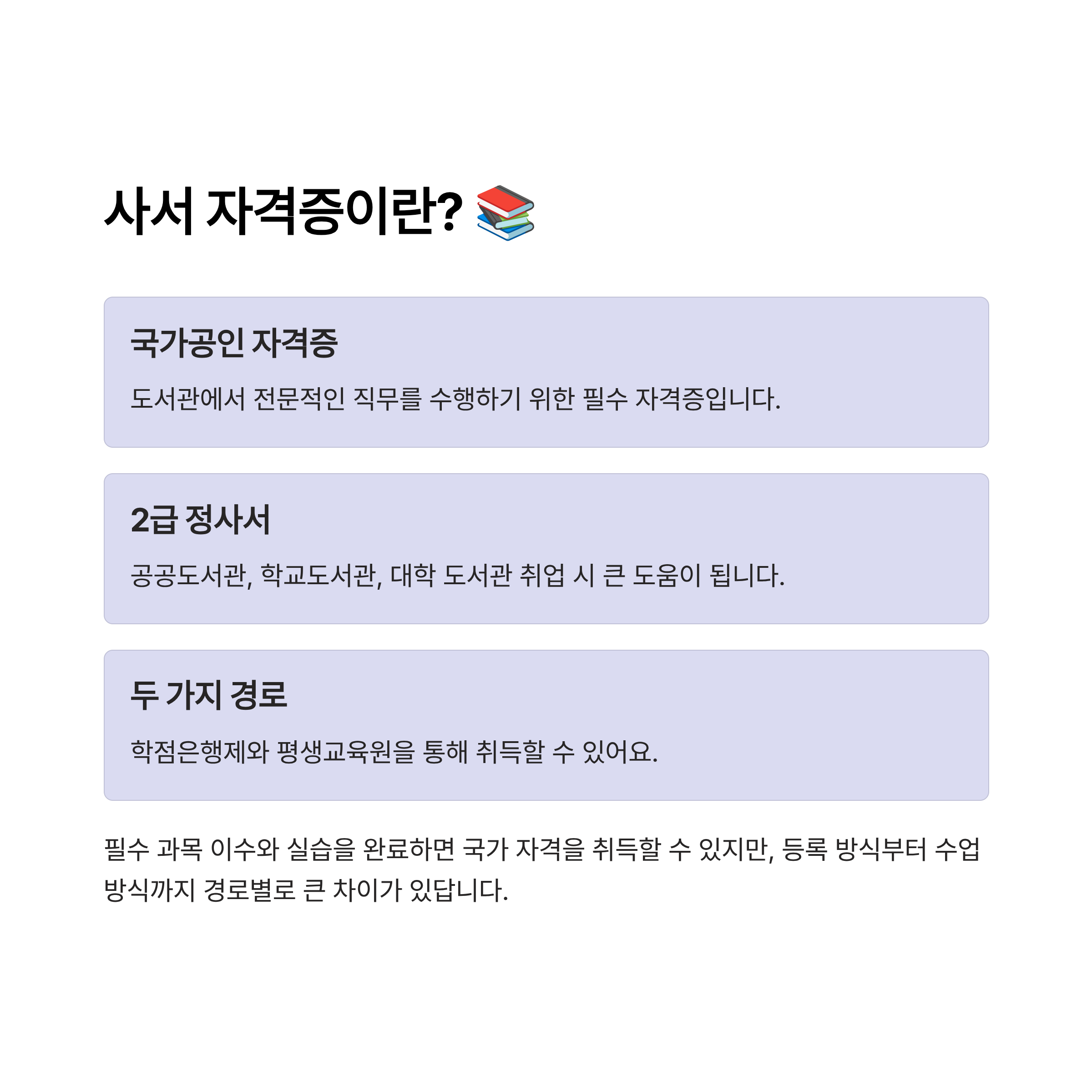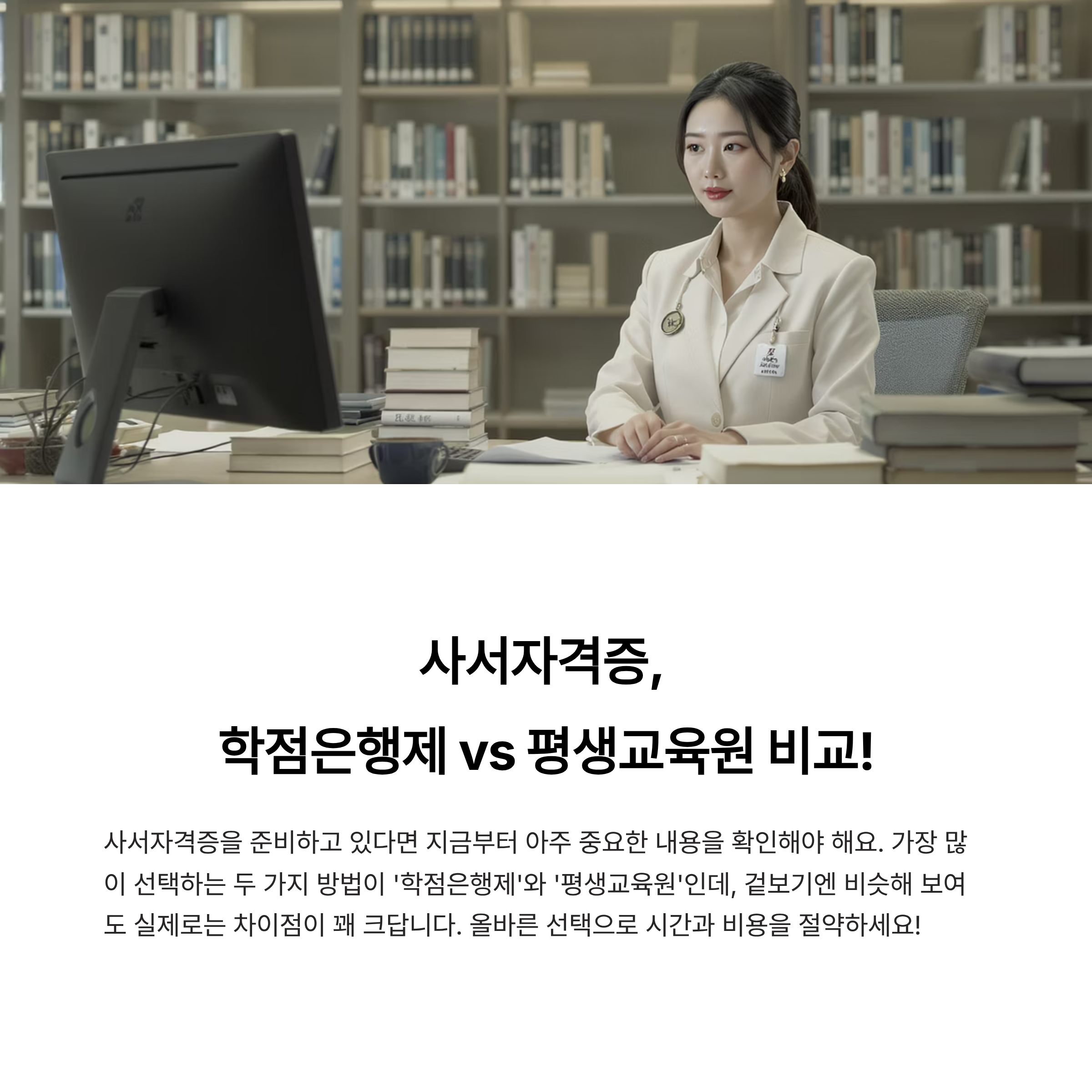 📢 사서자격증을 준비하고 있다면, 지금부터 아주 중요한 내용을 확인해야 해요. 가장 많이 선택하는 두 가지 방법이 바로 '학점은행제'와 '평생교육원'인데요, 겉보기엔 비슷해 보여도 실제로는 차이점이 꽤 크답니다.