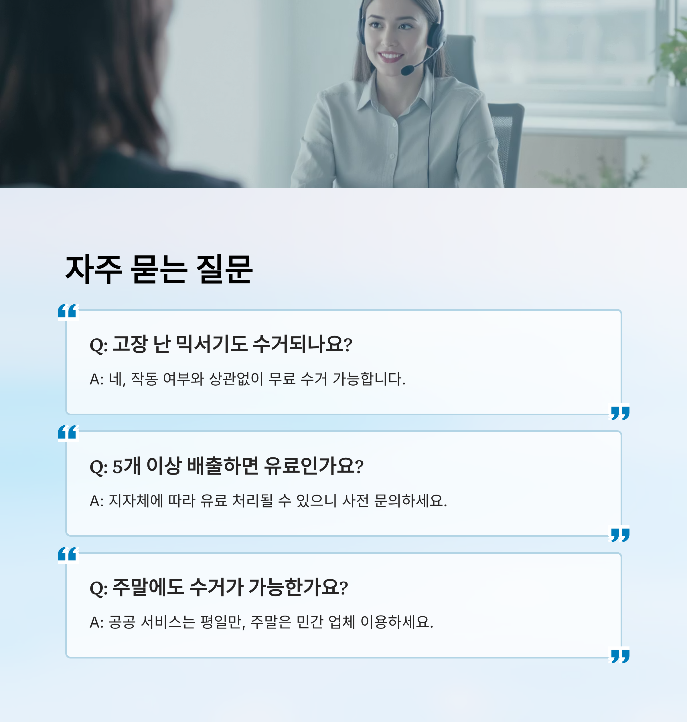A2. 네, 작동 여부와 상관없이 무료 수거 가능해요.