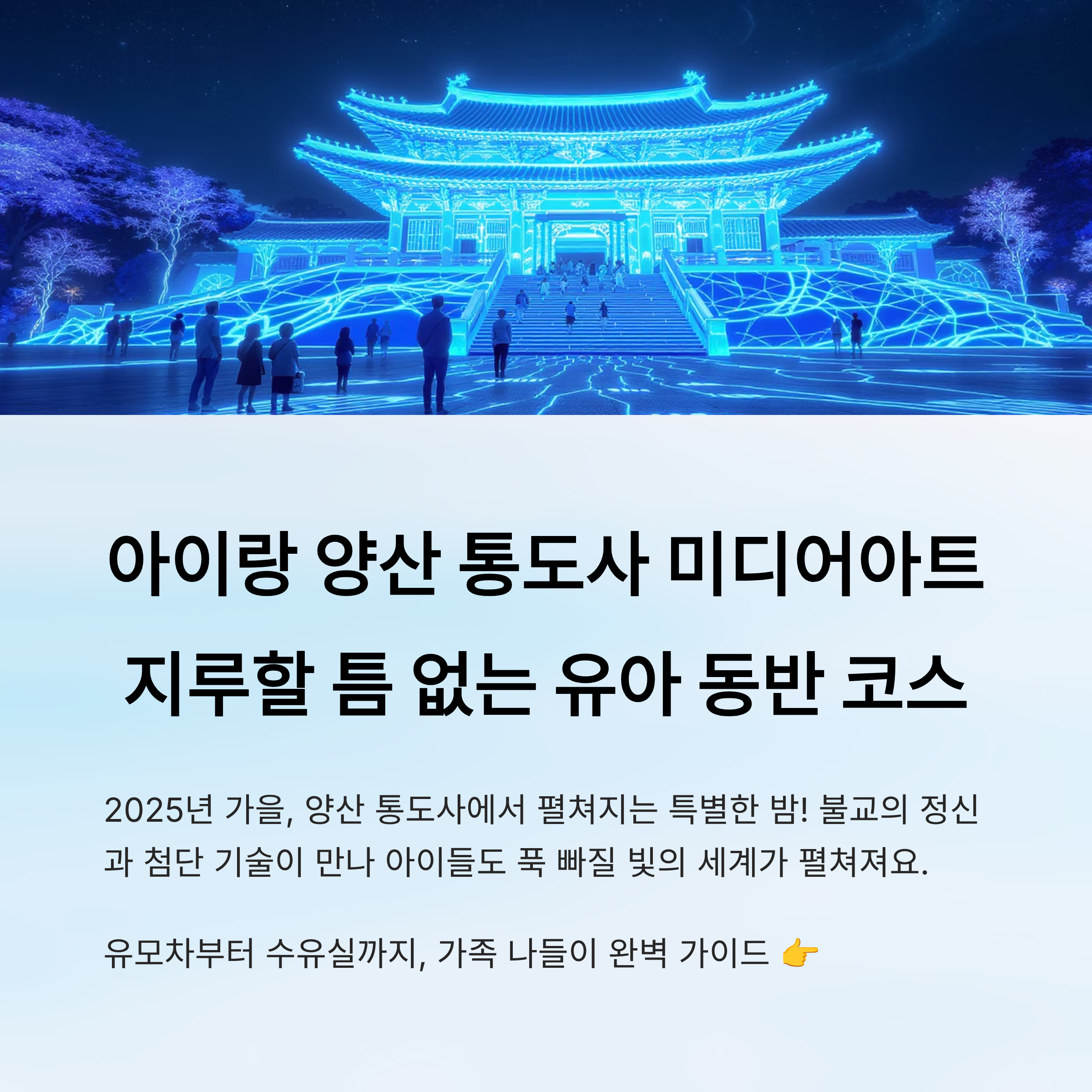 2025년 가을, 양산 통도사에서는 가족 모두가 함께 즐길 수 있는 특별한 밤이 펼쳐지고 있어요. 바로 ‘통도사 미디어아트’ 행사인데요. 불교의 정신과 첨단 기술이 어우러진 이 행사에선 아이들도 푹 빠질 만큼 다양한 빛의 콘텐츠들이 가득하답니다.