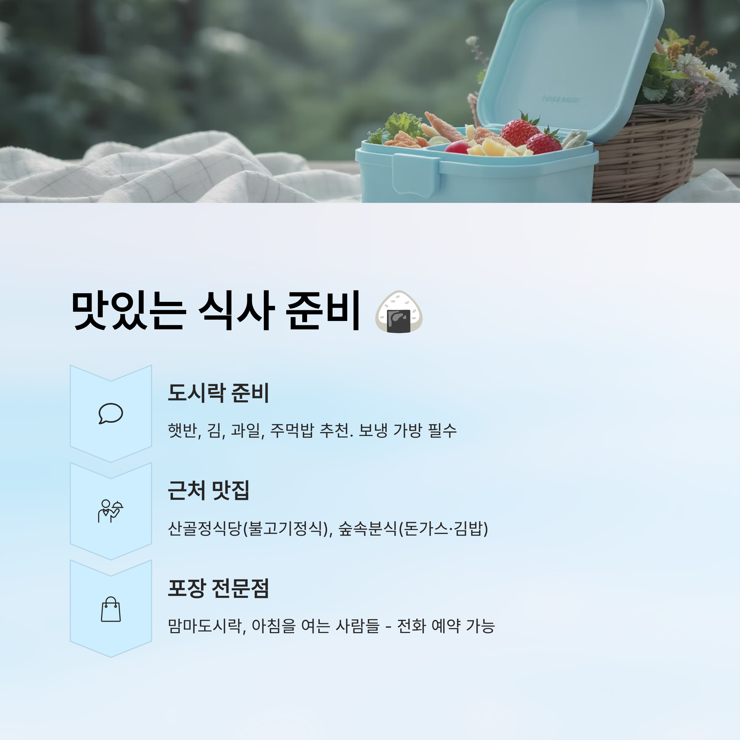 🍙 근처 맛집 & 휴양림 도시락 꿀팁