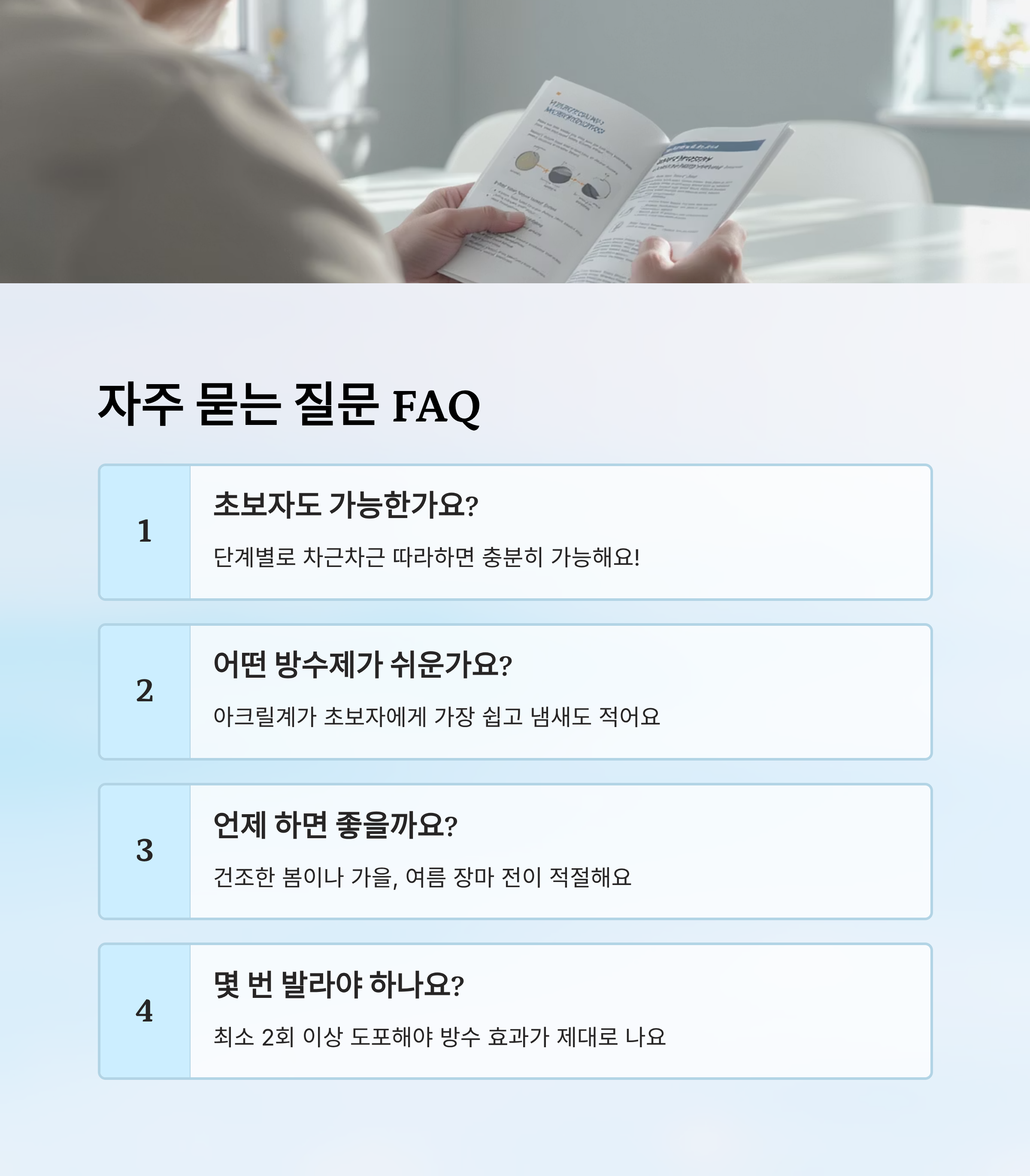 Q1. 초보자가 셀프 방수 가능한가요?