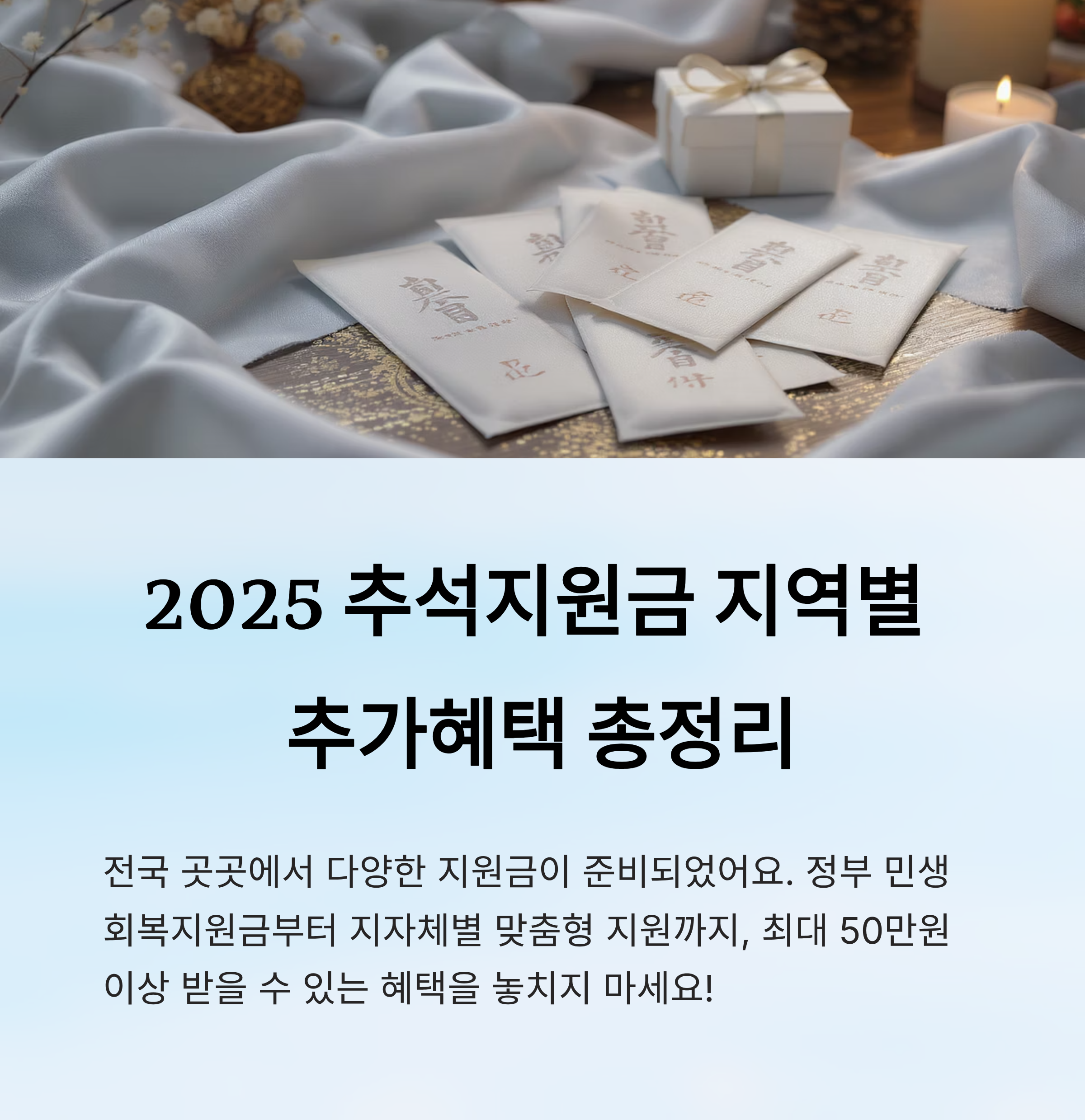2025년 추석을 맞아 전국 곳곳에서 다양한 지원금이 준비되었어요. 중앙정부의 민생회복지원금 2차부터 각 지자체별 맞춤형 지원금까지, 주민들에게 실질적으로 도움이 되는 제도가 많아졌답니다. 특히 일부 지역에서는 최대 50만 원 이상을 지급해 ‘우리 동네’만의 특별한 혜택을 체감할 수 있어요.