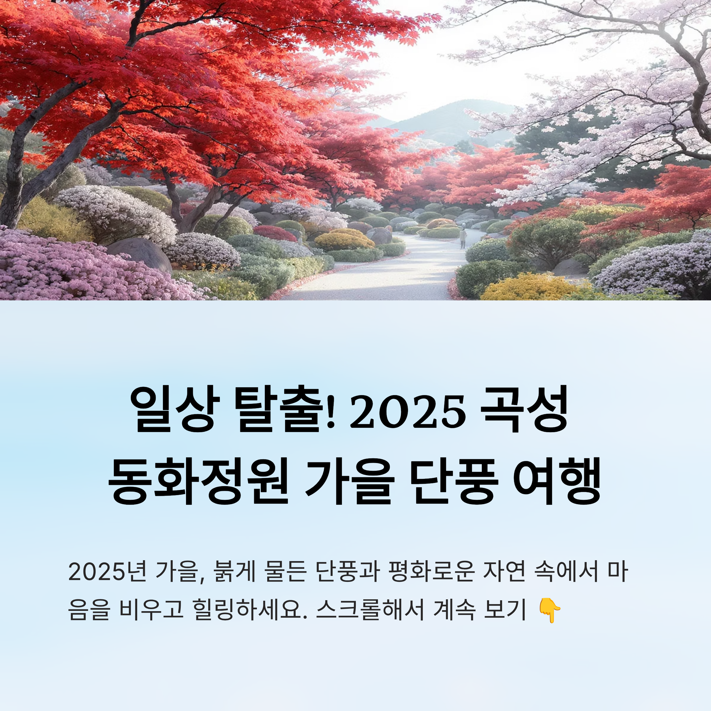 2025년 가을, 일상에 지친 현대인들에게 곡성 동화정원은 완벽한 힐링 여행지예요. 붉게 물든 단풍과 잔잔한 자연 풍경 속에서 마음을 비우고, 편안함을 느낄 수 있는 공간이 가득하답니다.