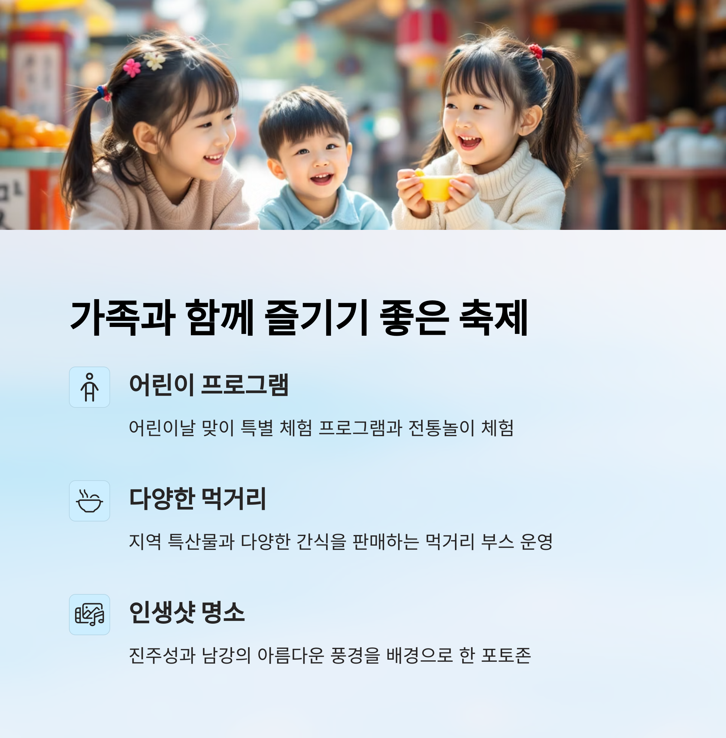 진주논개제는 남녀노소 모두가 참여할 수 있는 프로그램이 풍성해요! 특히 이번 제24회 축제는 체험형 콘텐츠가 많아, 단순 관람을 넘어 '참여형 축제'로 거듭났답니다.