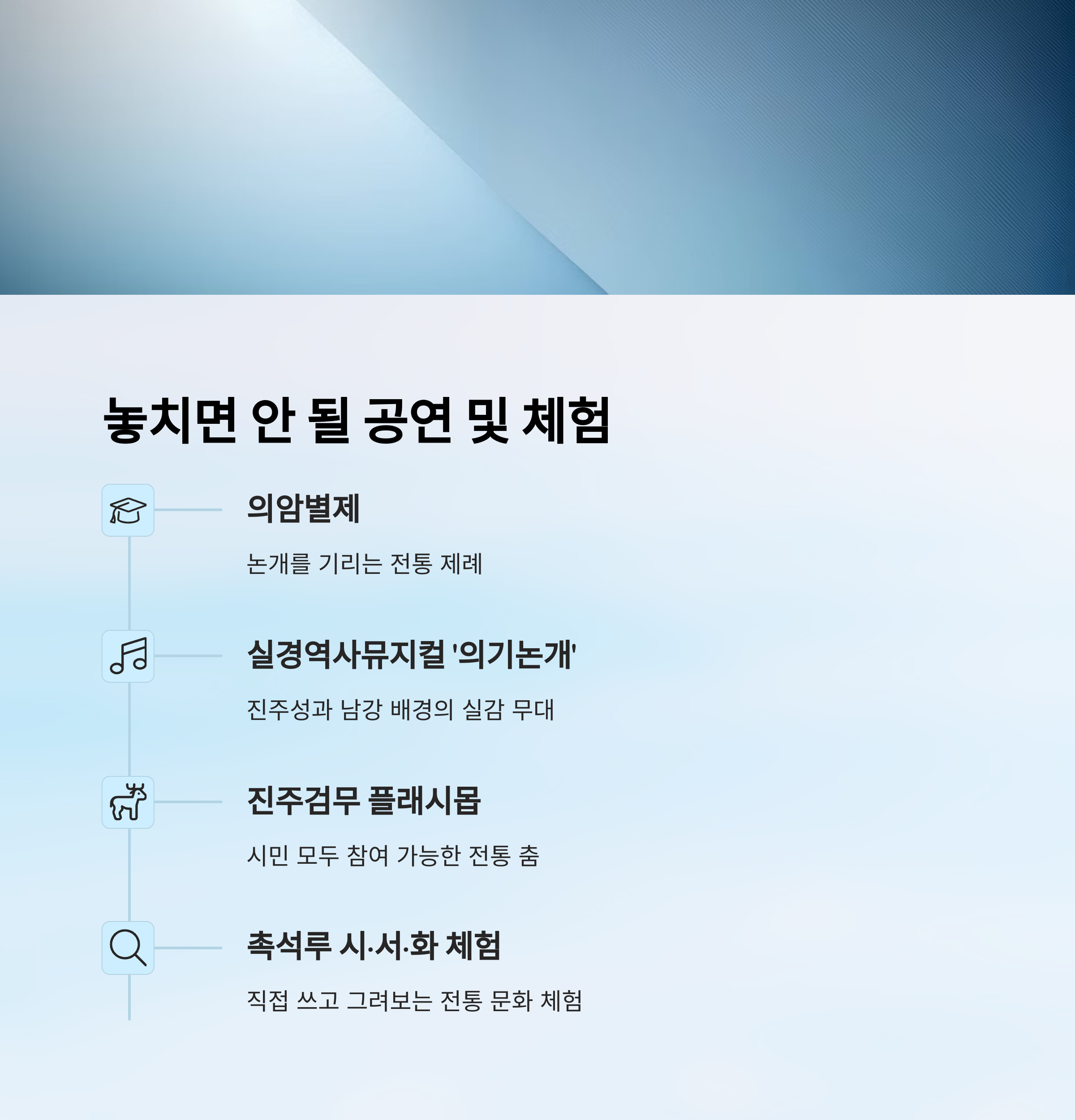 그럼 이번 2025년 진주논개제에서 절대 놓치면 안 되는 대표 공연과 체험행사들을 살펴볼까요?
