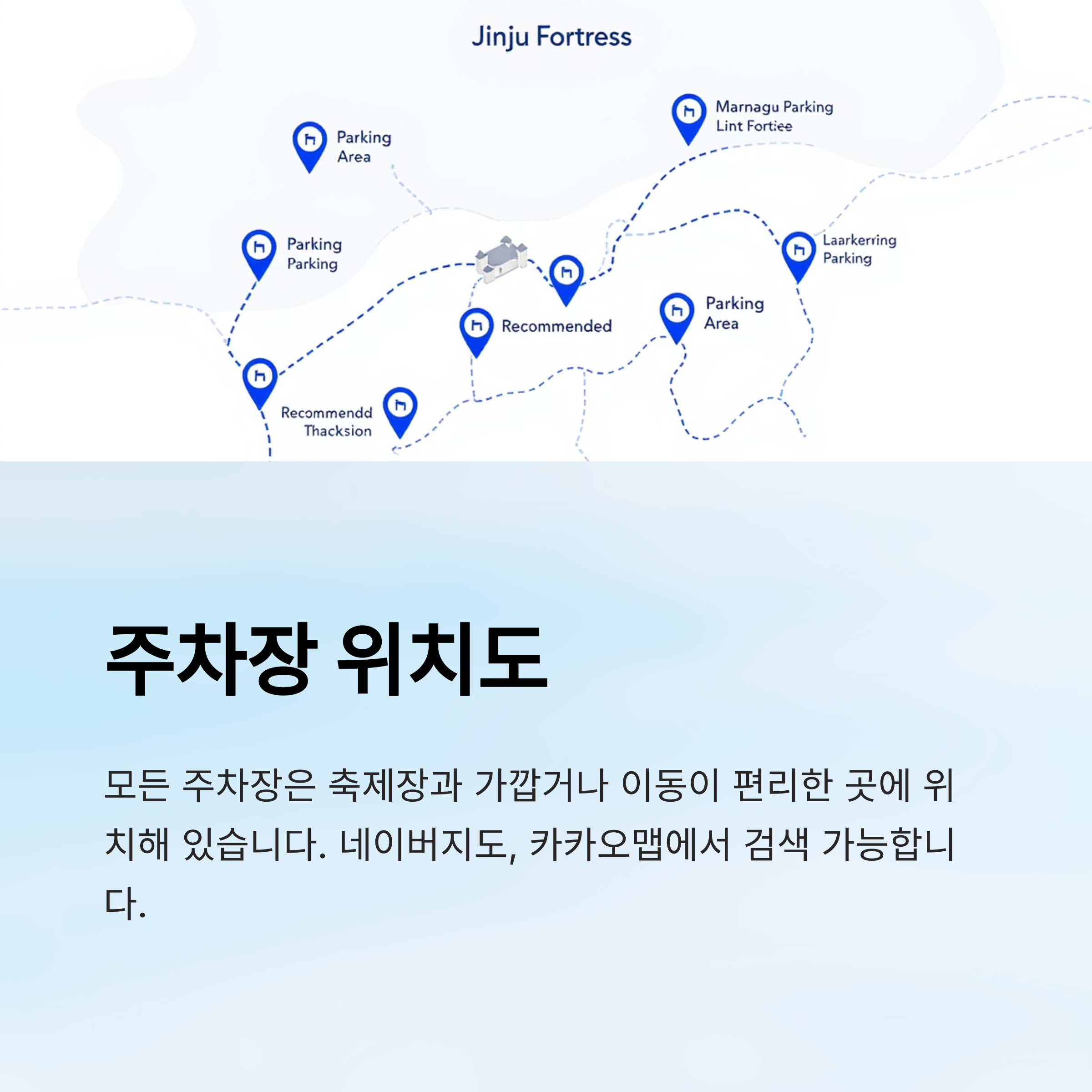 이 7곳은 모두 축제장과 가깝거나, 이동이 편리한 곳에 위치하고 있어요. 미리 위치를 확인하고 가면 주차 스트레스 없이 논개제를 200% 즐길 수 있을 거예요! 🚘🎈