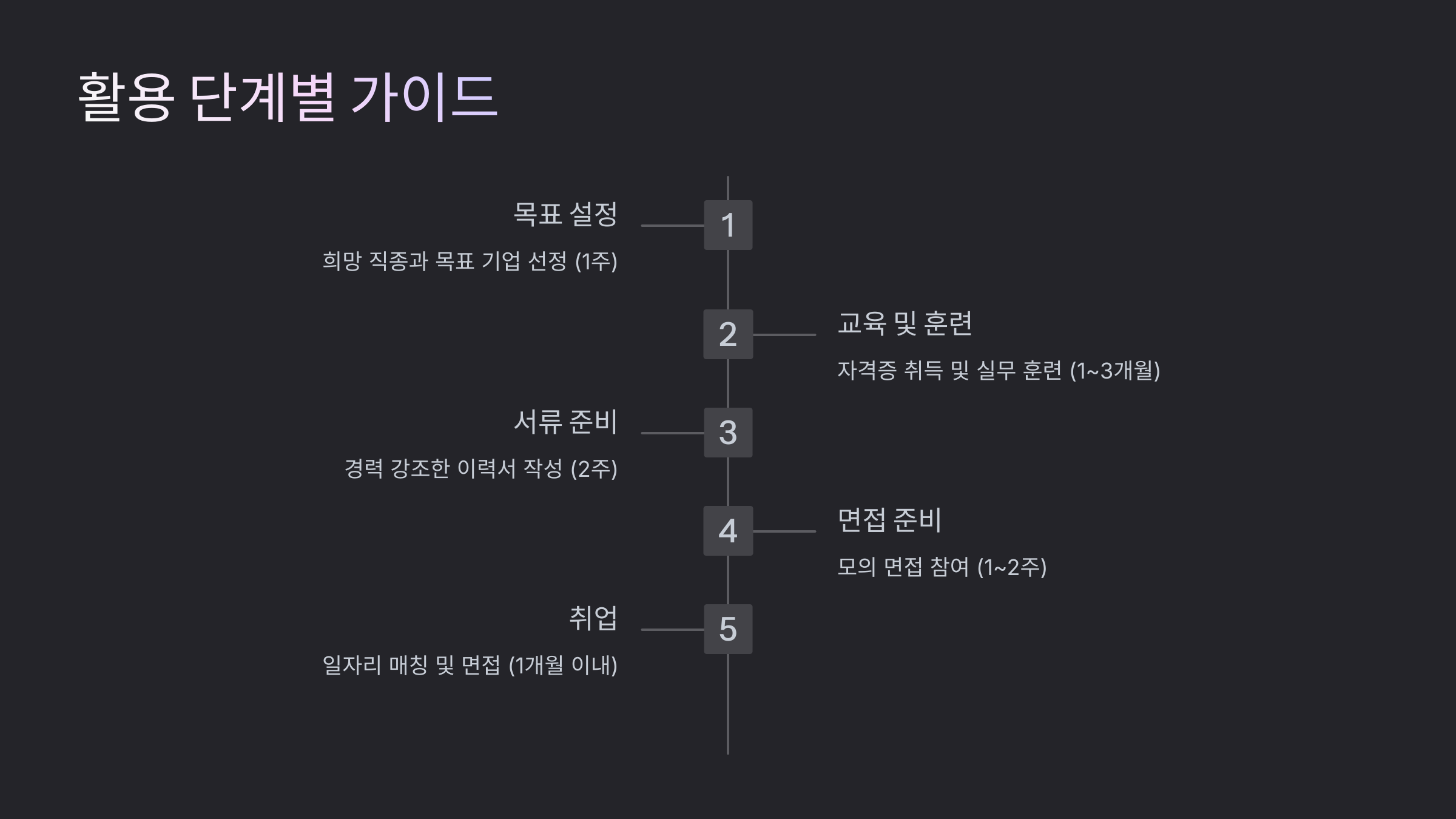 | 5. 일자리 매칭 및 취업 | 고용센터의 취업 알선 및 면접 진행 | 1개월 이내 |
