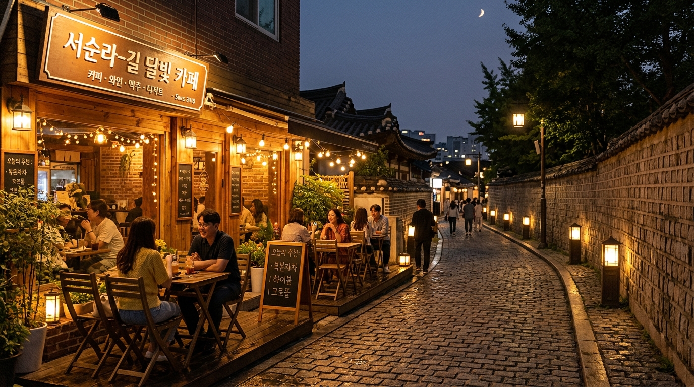 솔직히 서순라길은 밤에 더 예쁩니다. 창경궁을 보고 나와서 돌담길을 따라 종로3가역까지 천천히 걸어보세요. 조명이 켜진 돌담과 작은 가게들의 불빛이 섞여 정말 낭만적인 밤을 만들어 줄 거예요. ✨