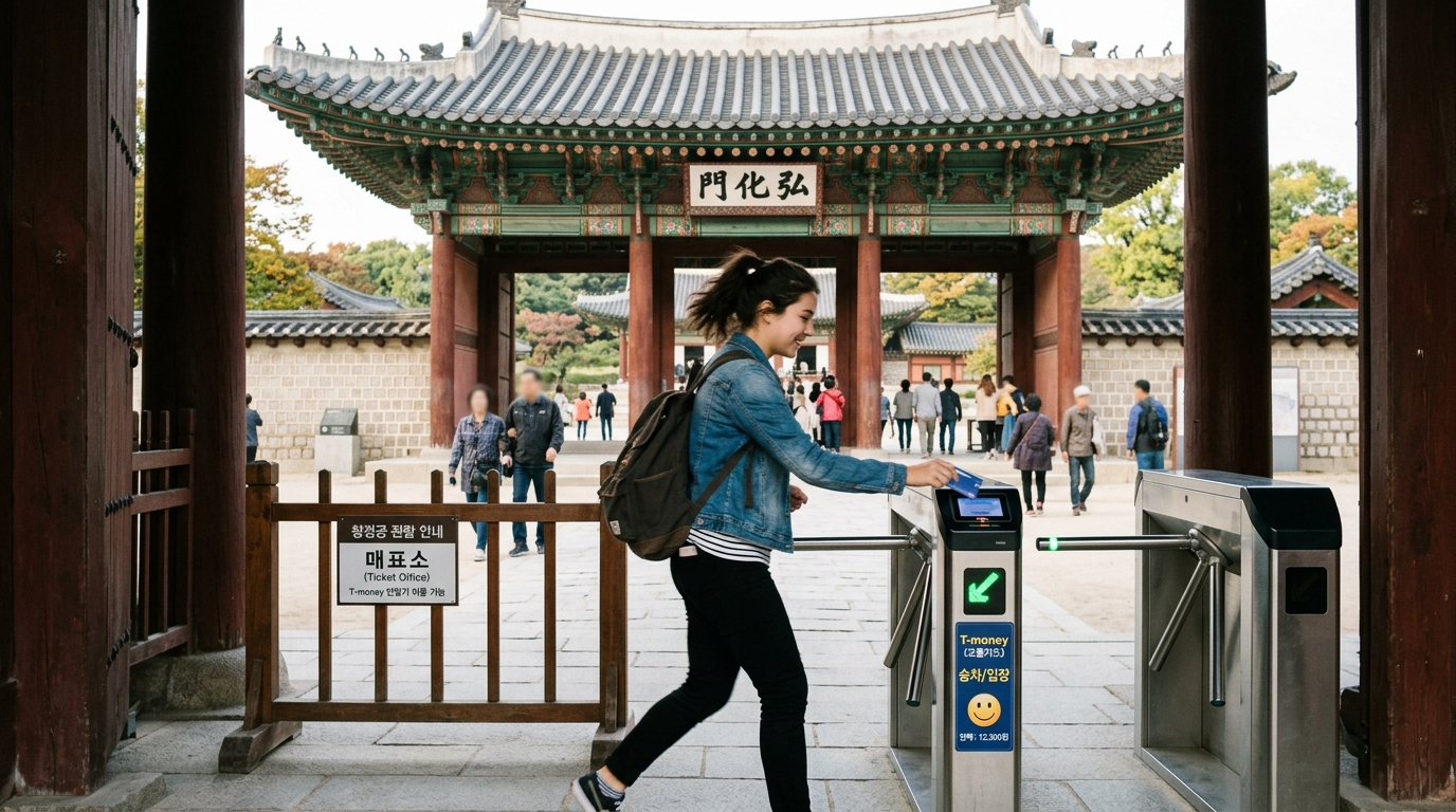 창경궁은 교통카드(T-money)나 신용카드로 입구에서 바로 찍고 입장할 수 있습니다. 매표소 줄이 길다면 당황하지 말고 '교통카드 단말기'를 찾아보세요. 훨씬 빠르게 입장 가능합니다!