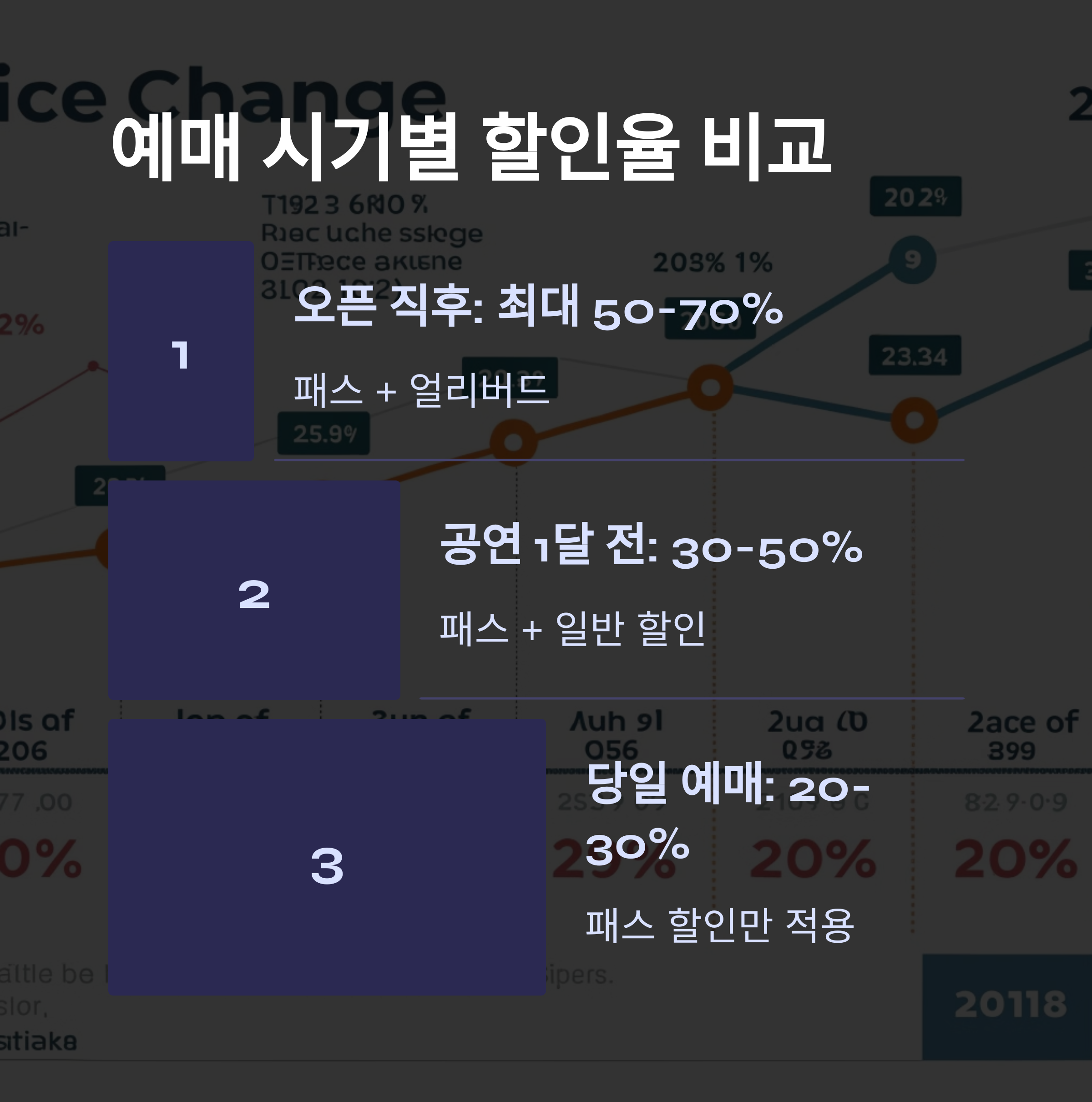 이제 예매 시기별 할인율을 비교해보면서 더 효과적인 예매 방법을 알아볼까요? ⏰