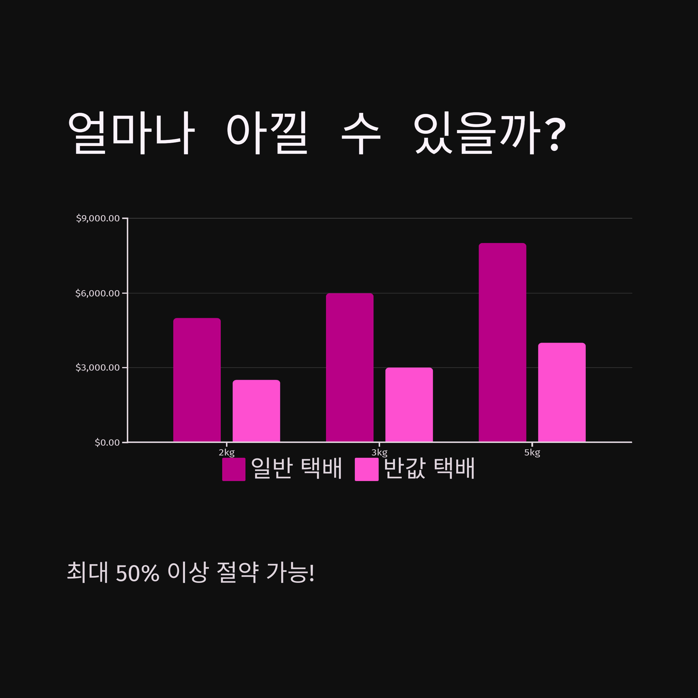 | 3kg 이하의 가벼운 물건 | ✅ 반값 택배 | 저렴한 요금으로 발송 가능 |