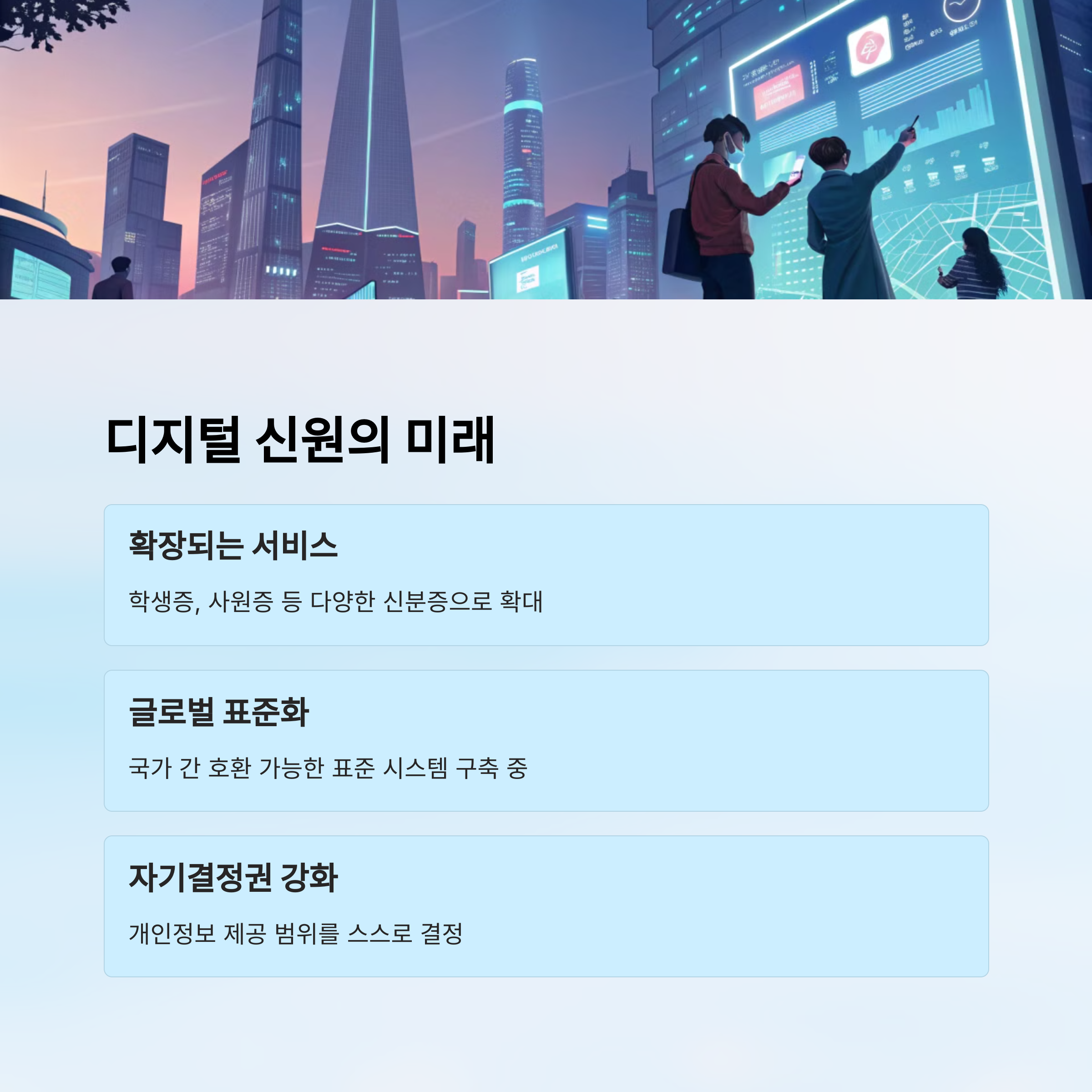 앞으로는 모바일 신분증 하나로 모든 생활이 가능해지는 시대가 올 수도 있어요. 더욱 발전할 기술이 기대되지 않나요? ✨