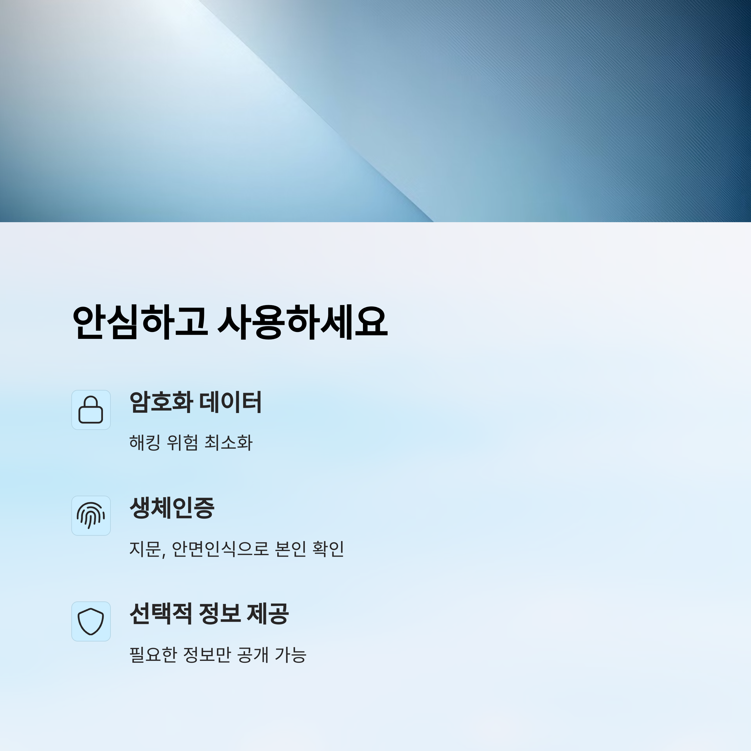 현재 모바일 신분증과 NFC 결제에는 생체 인증(지문, 얼굴 인식), 2단계 인증, 암호화 기술이 적용되어 있어요. 또한 사용자의 스마트폰에만 저장되며, 클라우드 서버에도 보호된 상태로 저장돼요.