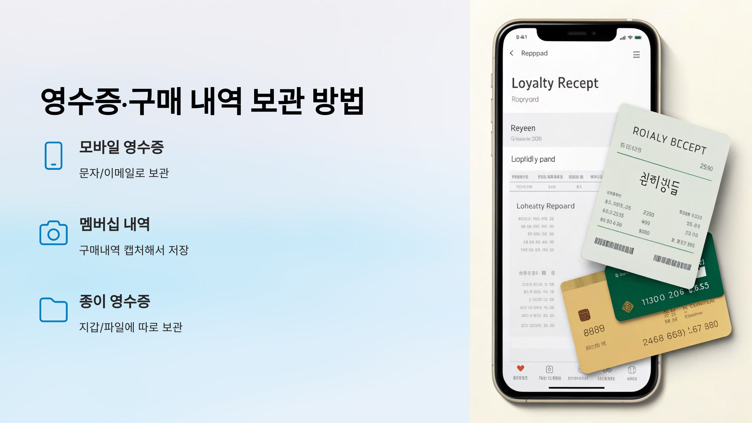 A2. 멤버십 회원이라면 마이페이지에서 구매 내역을 확인할 수 있어요. 하지만 일부 매장은 종이 영수증을 요구할 수도 있으니 구매 후 보관하는 게 좋아요.