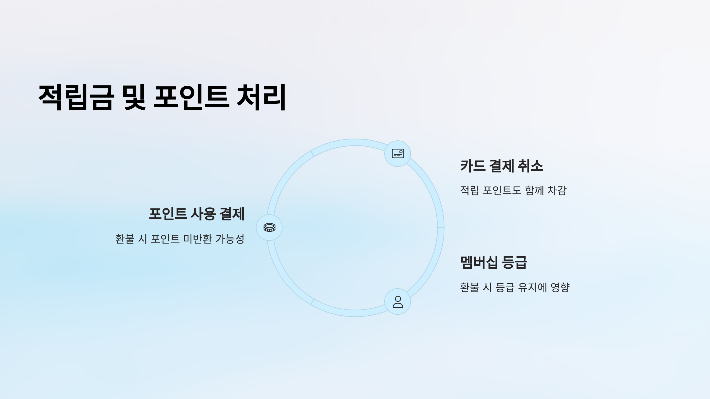 - 카드 결제 후 취소하면 적립된 포인트도 함께 차감됨