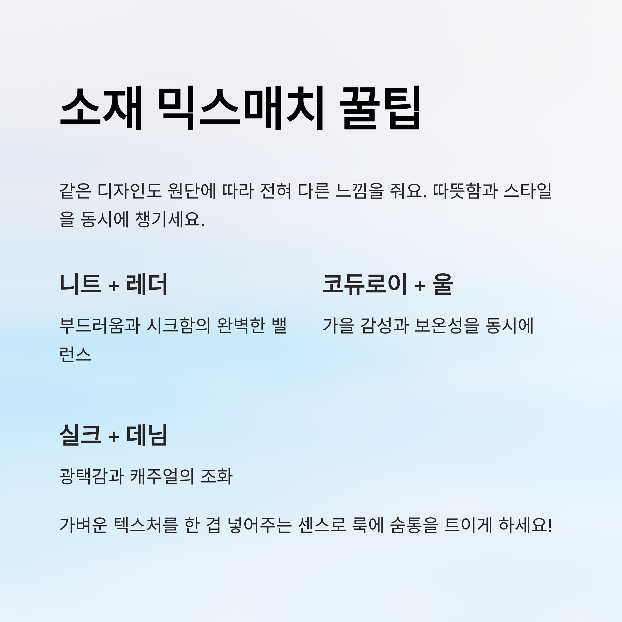 🧵 소재 믹스매치 꿀팁
