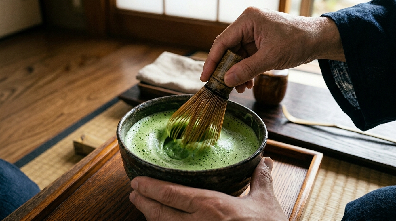 데일리 말차 바 즉석에서 격불(차를 젓는 행위)한 말차 라떼 시음