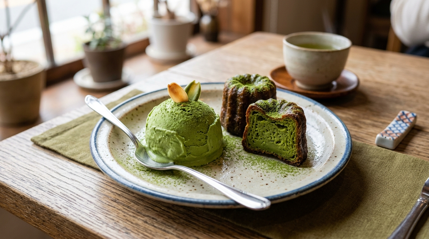 • 말차 까눌레 & 휘낭시에: 겉바속촉의 정석, 구움과자에 말차의 쌉쌀함이 더해져 차와 환상적인 궁합을 자랑합니다.