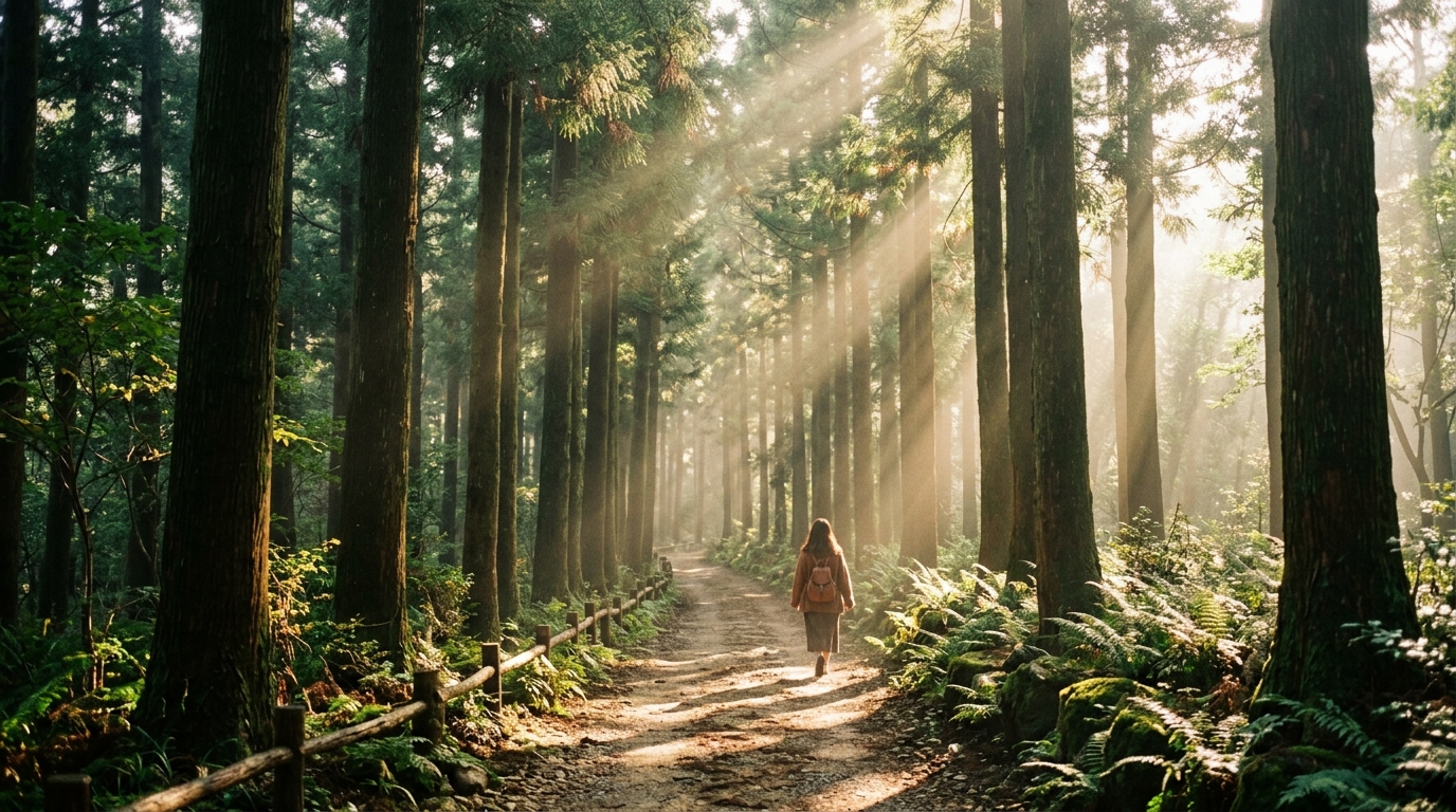 1. 대한다원 삼나무 길: 축제 주 행사장에서 차로 5분 거리입니다. 하늘 높이 솟은 삼나무 사이로 비치는 햇살은 그야말로 장관입니다.